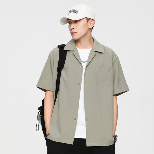 Loose Solid Color Casual Lapel Ordinary Short Sleeve Shirt Men