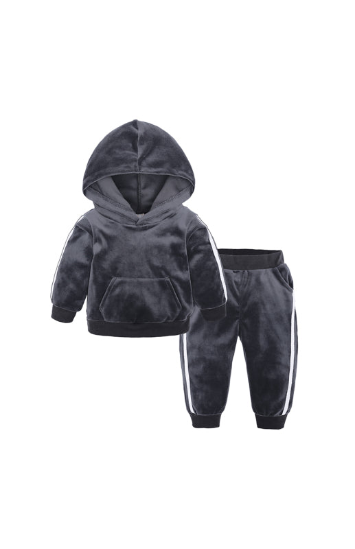 Children's Hooded Side Strip Gold Velvet Pyjama Sets