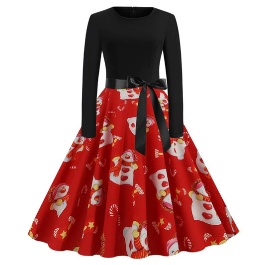 Christmas round neck snowflake print slim fit Christmas long-sleeved dress