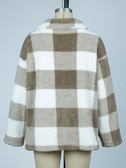 Women's plaid single-breasted double-sided velvet jacket