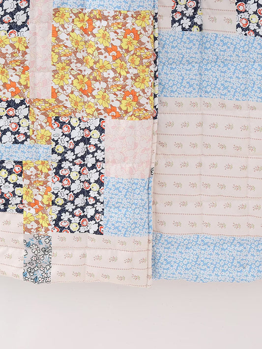 Women's printed belted long quilted jacket