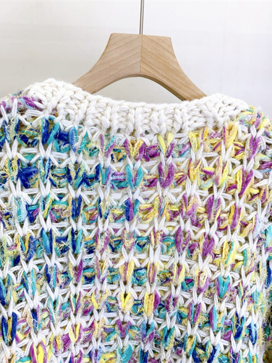 Women's Thick Knitted Colorful Hand-Knitted Sweater Jacket Lazy Style Outer Top