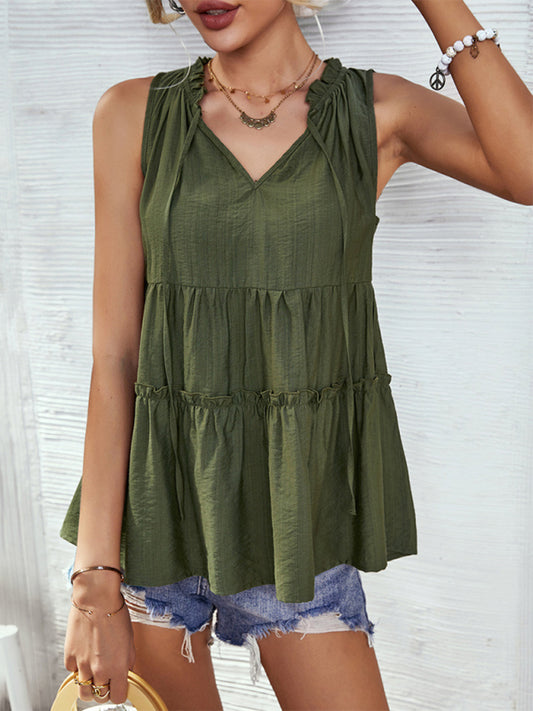 Women's Woven Fashion V-Neck Button-Up Sleeveless Jumpsuit