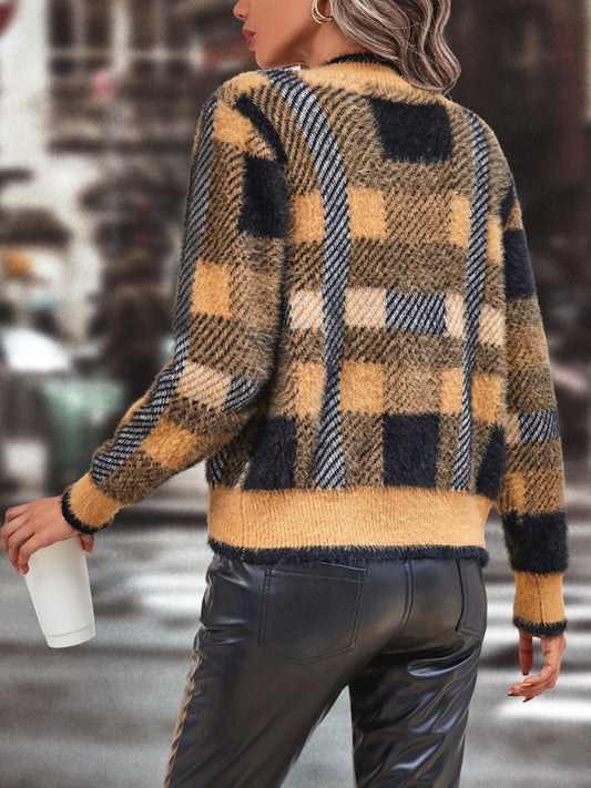 Women’s Plaid Print Long Sleeves V-neck Front Button Closures Cardigan