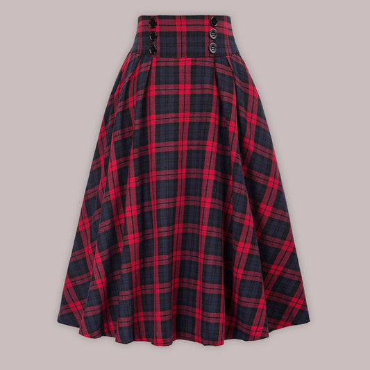 Women’s Plaid Print Buttons High Waist Midi Skirt