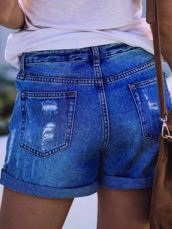 DESTROYED HIGH STRETCH DENIM SHORTS