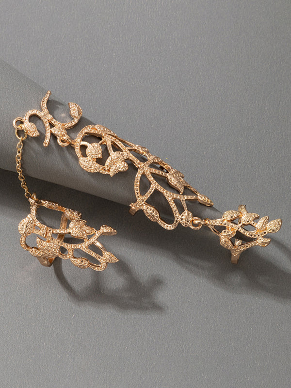 Exaggerated personality ring flower chain temperament fashion hollow carved with ring jewelry