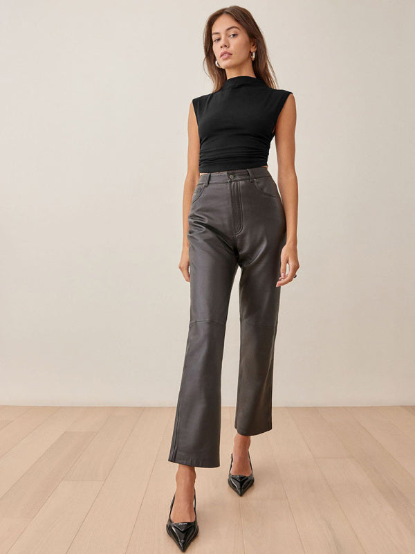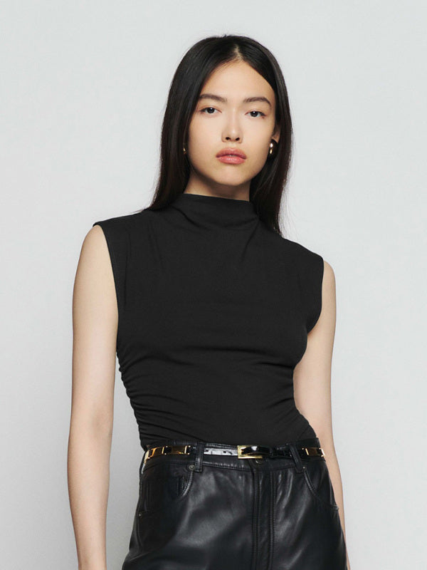 Half-high collar casual all-match vest short shirred polyester-cotton shirt