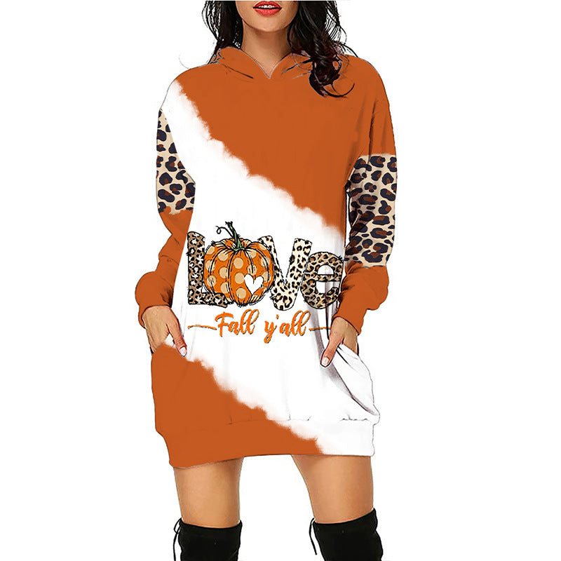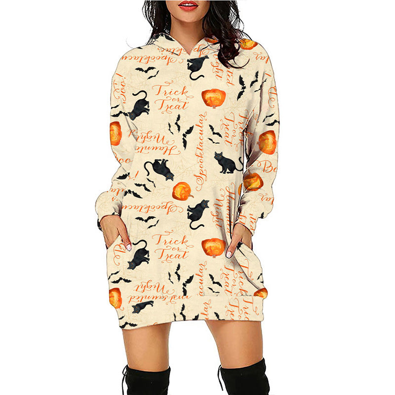Halloween print mid-length pocket hooded long-sleeved sweatshirt