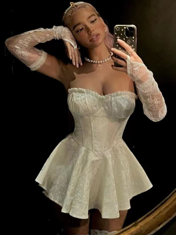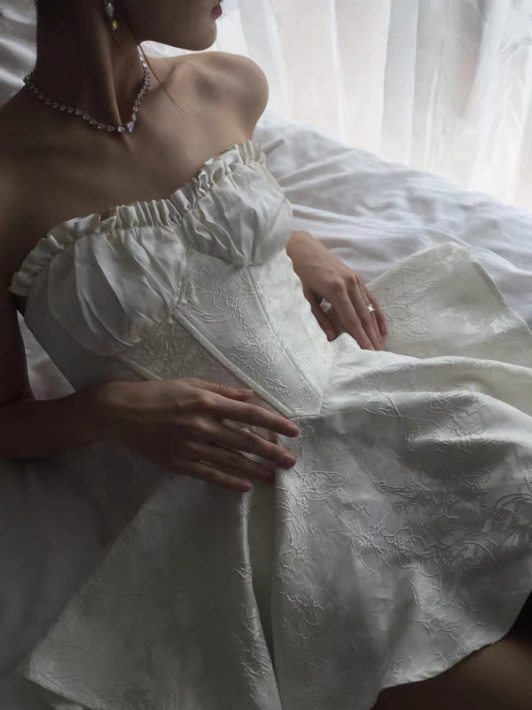 Lace jacquard tight sexy tube top dress high waist slim birthday dress princess dress