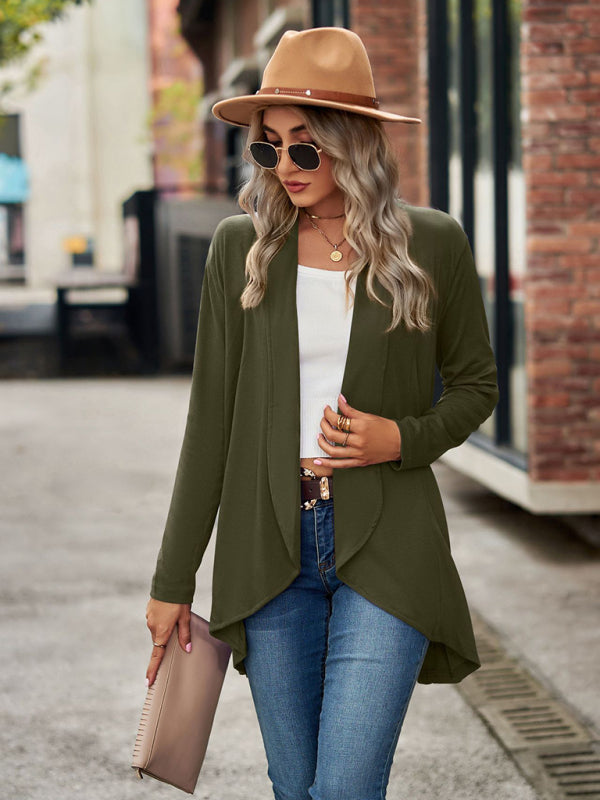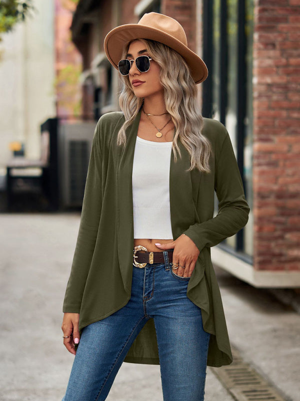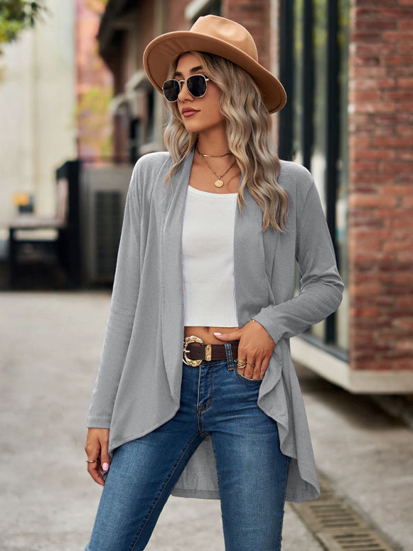 The timeless styling essential long sleeve open-front cardigan pairs effortlessly with pants, skirts, or dresses.