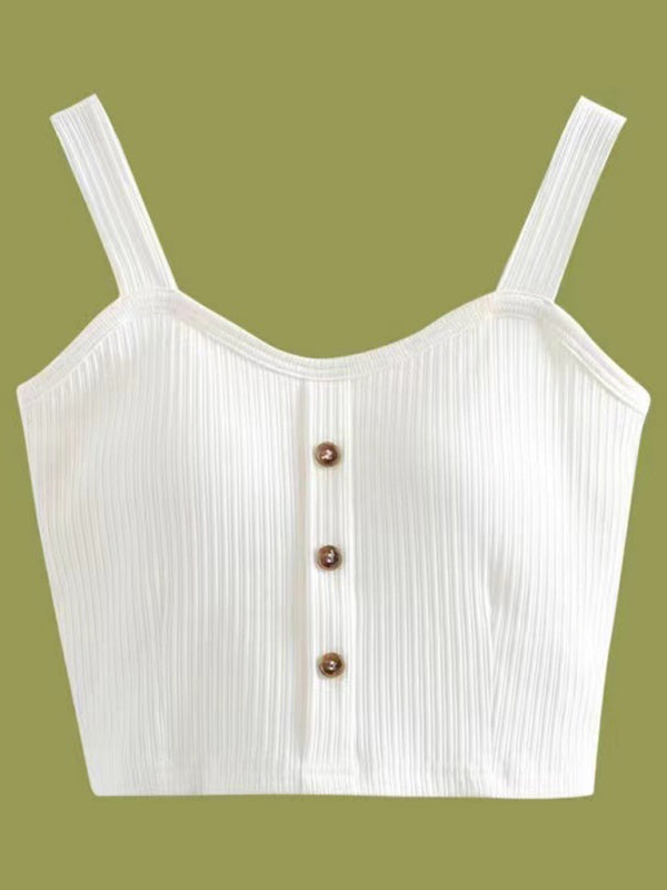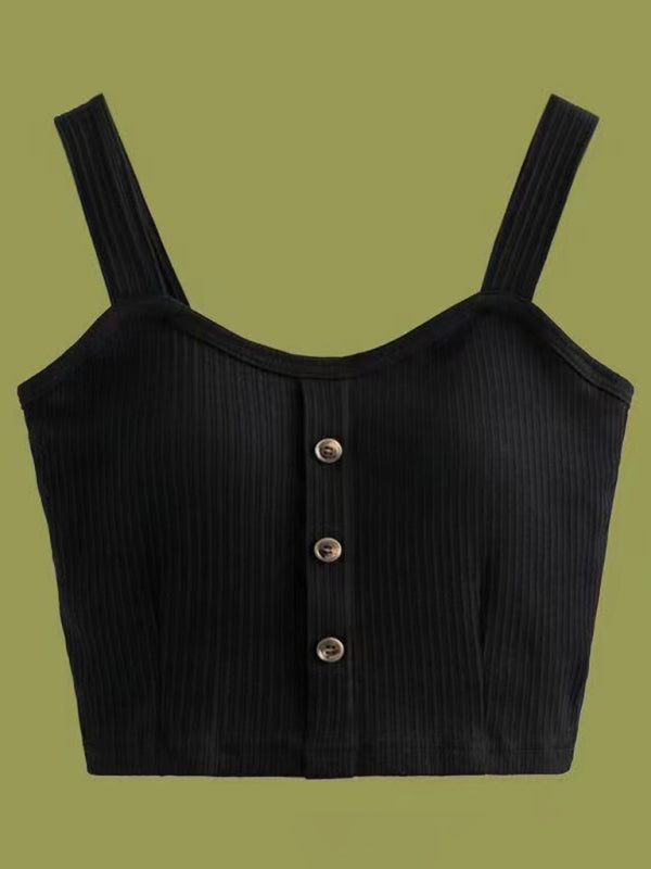 Women's Solid Color button Front Details Bib Crop Tank