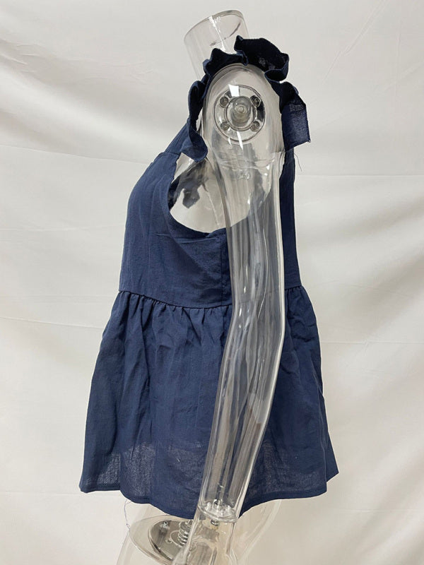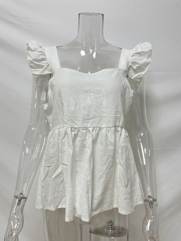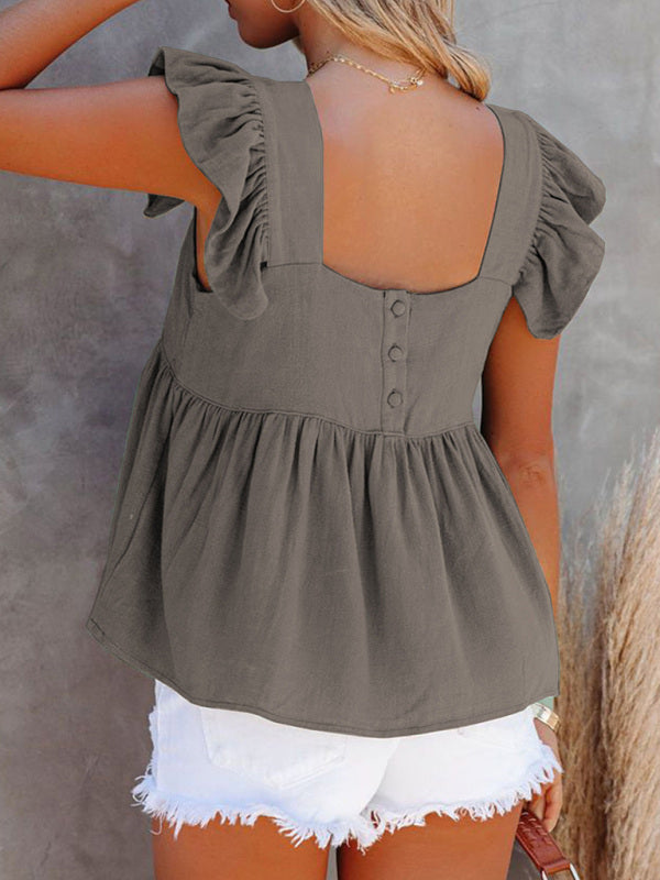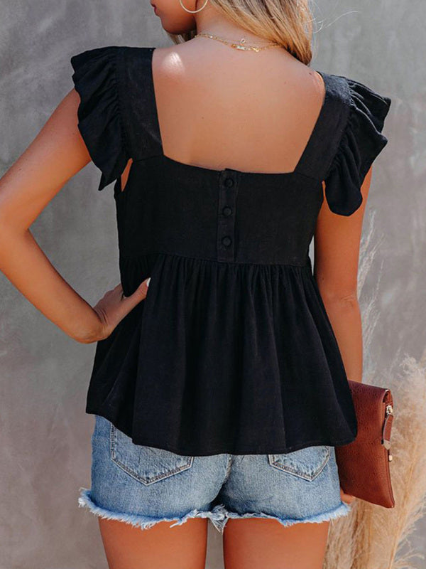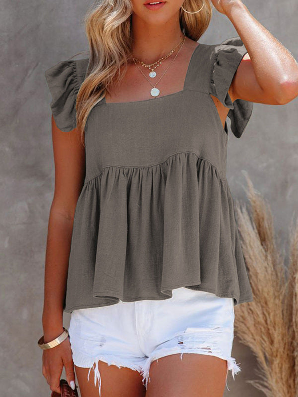 Women's Solid Color Casual Square Neck Fly Fly Sleeve Top