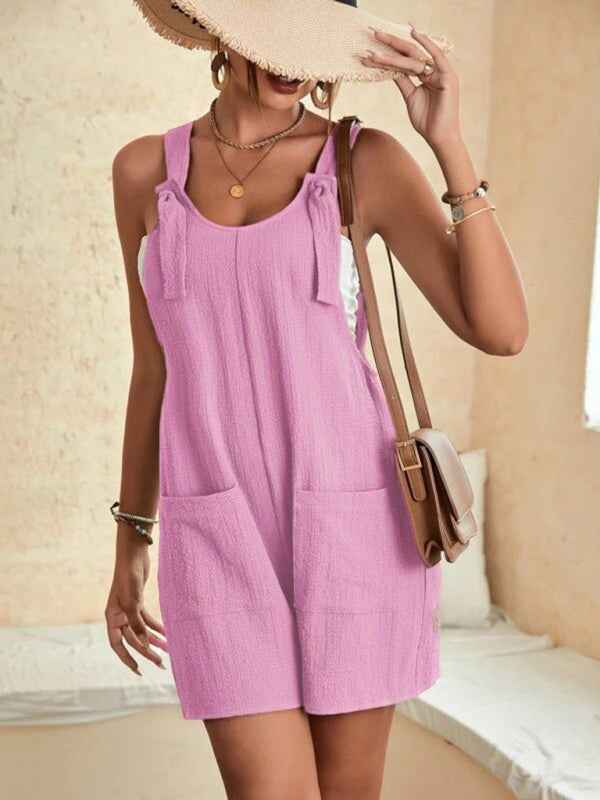 Women's Solid Color Patch Pocket Lace Up Casual Overalls