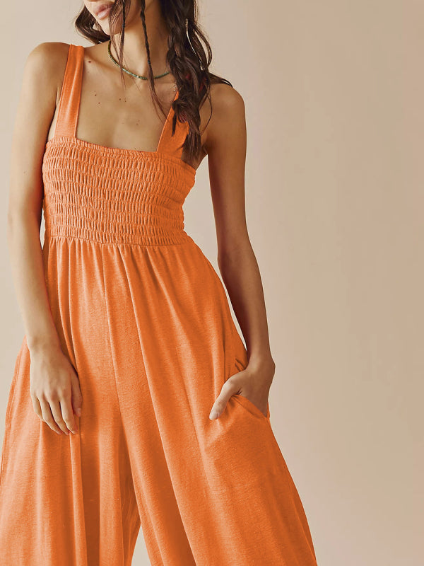 Women's Square Neck Casual Slim Pleated Jumpsuit
