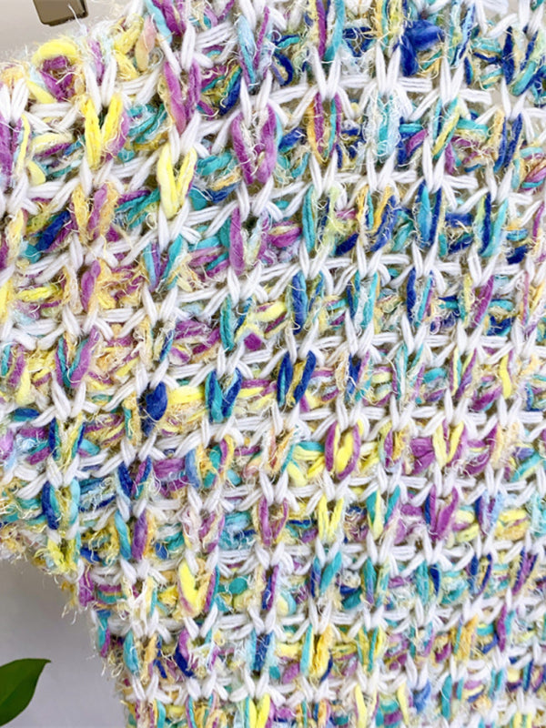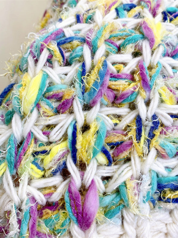 Women's Thick Knitted Colorful Hand-Knitted Sweater Jacket Lazy Style Outer Top