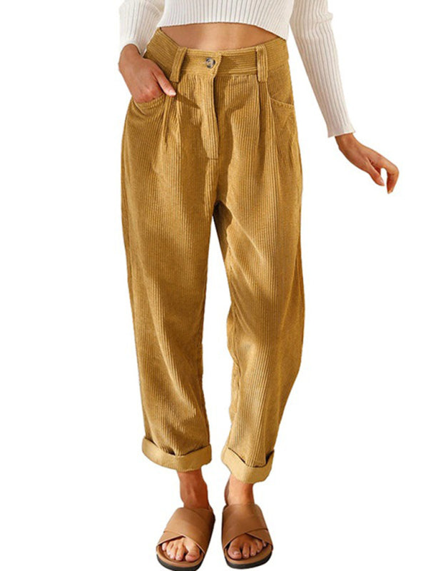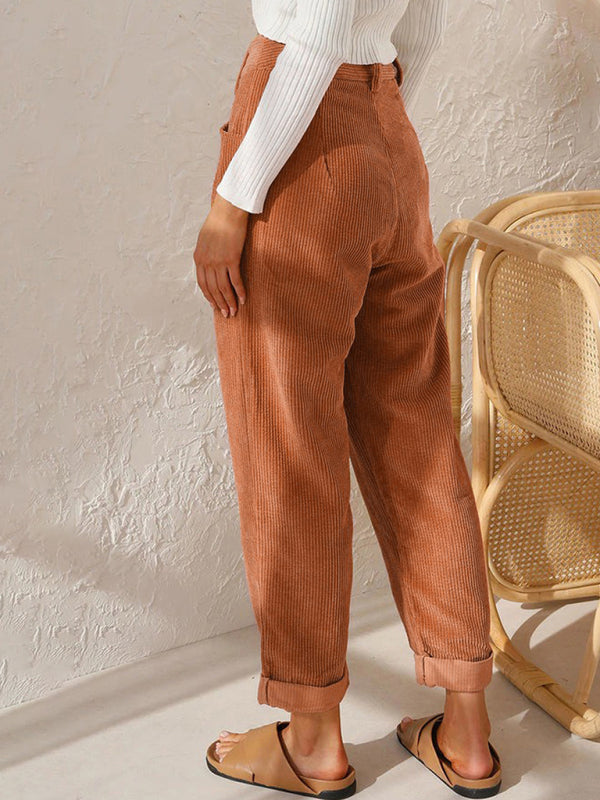 High Waist Lounge Pants Solid Color Corduroy Loose Straight Leg Trousers