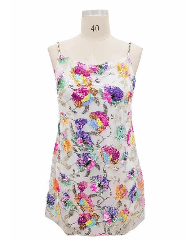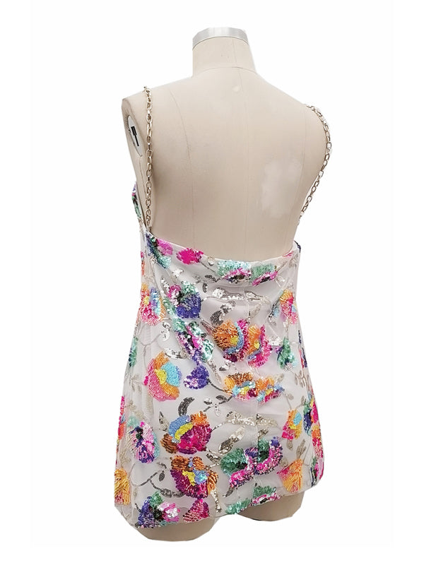 Sexy boat neck backless sequin floral chain women's sexy short dress